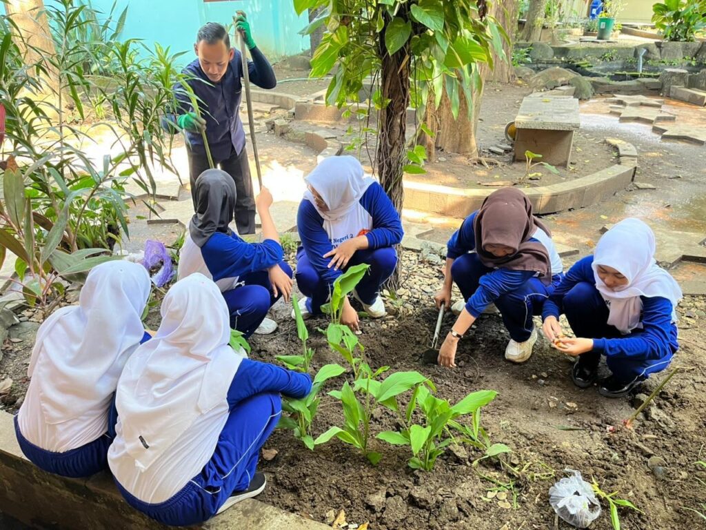 Kegiatan yang berlangsung di area taman sekolah ini diikuti oleh murid beserta pendampingan dari guru yang tergabung dalam Tim Lingkungan Hidup (LH) Sekolah dan tenaga kependidikan. Suasana penuh antusias terlihat ketika seluruh peserta bekerja sama menyiapkan media tanam, menata bibit, dan memberikan perawatan awal. Penanaman dilakukan di area sekolah yang dirancang sebagai ruang hijau edukatif.
